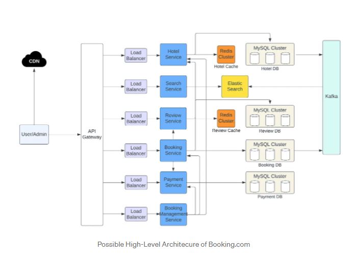 Nell’architettura reale del sistema di Booking.com, potrebbero esserci più microservizi di quelli elencati qui, oppure uno dei microservizi elencati potrebbe in realtà essere suddiviso in diversi microservizi. Di seguito sono riportati quelli che vengono descritti come microservizi principali e di base, ma questo potrebbe non rappresentare l’elenco completo ed esaustivo dei servizi di Booking.com.