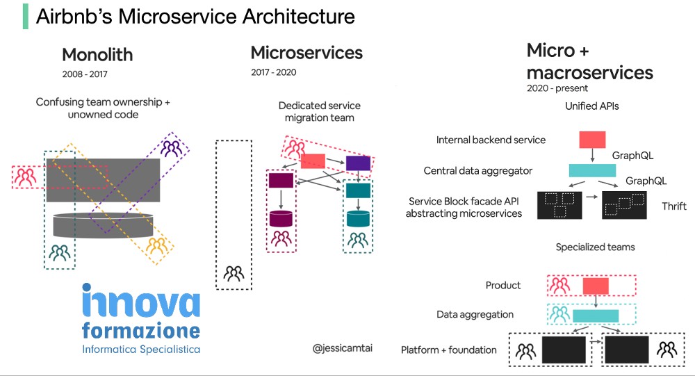 L’architettura a microservizi di Airbnb ha attraversato le seguenti fasi: